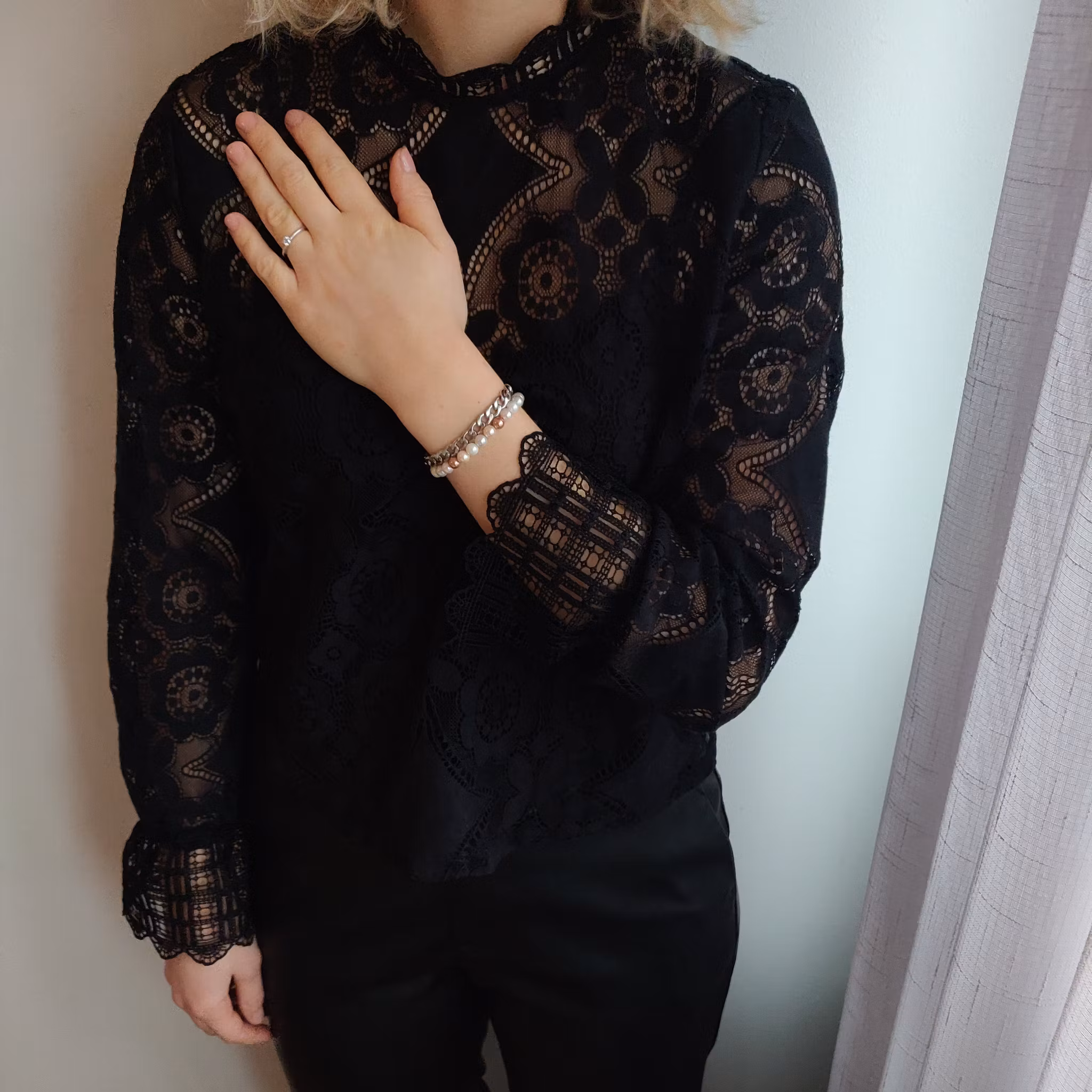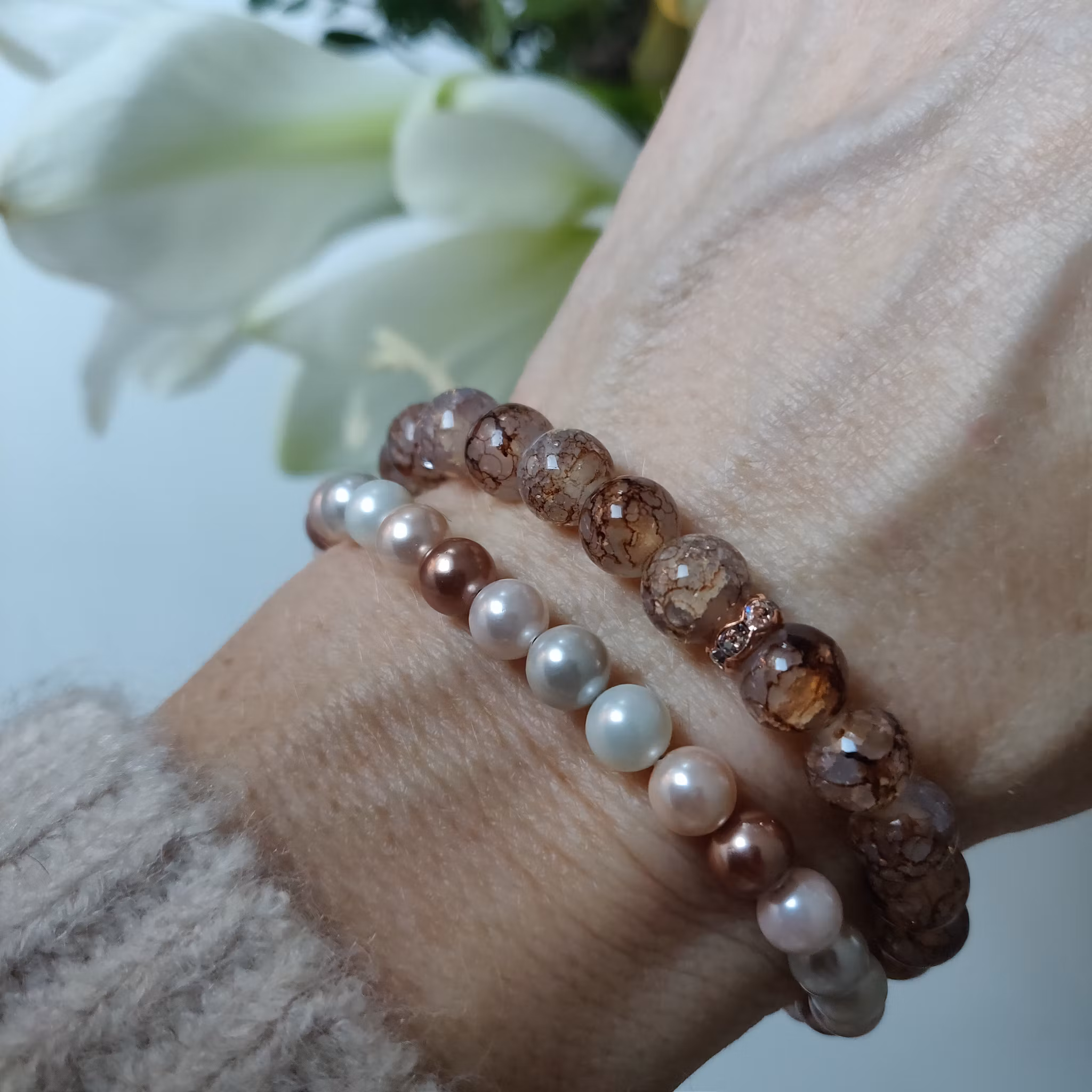 Mått: armband ca. 16 cm - 21 cm, pärlor 6 mm