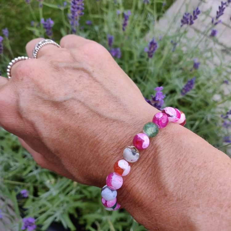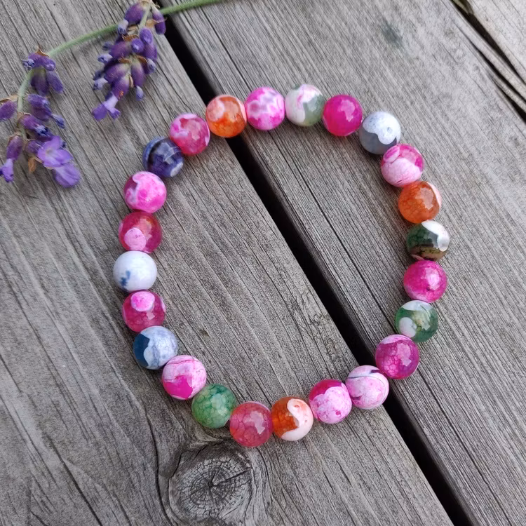 Armband av eldagat 8 mm. Stenarna varierar lite och kan skilja sig från bilden. Armbandet är elastiskt och ca. 18 cm