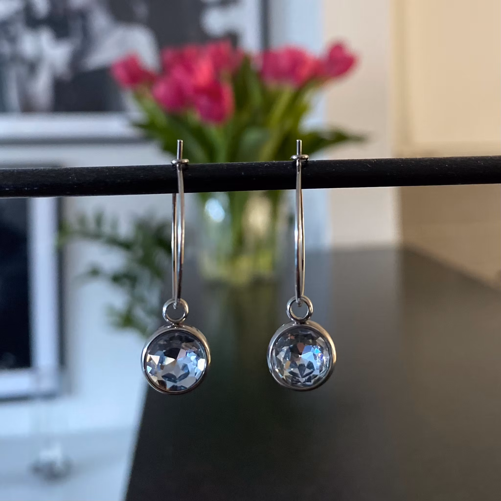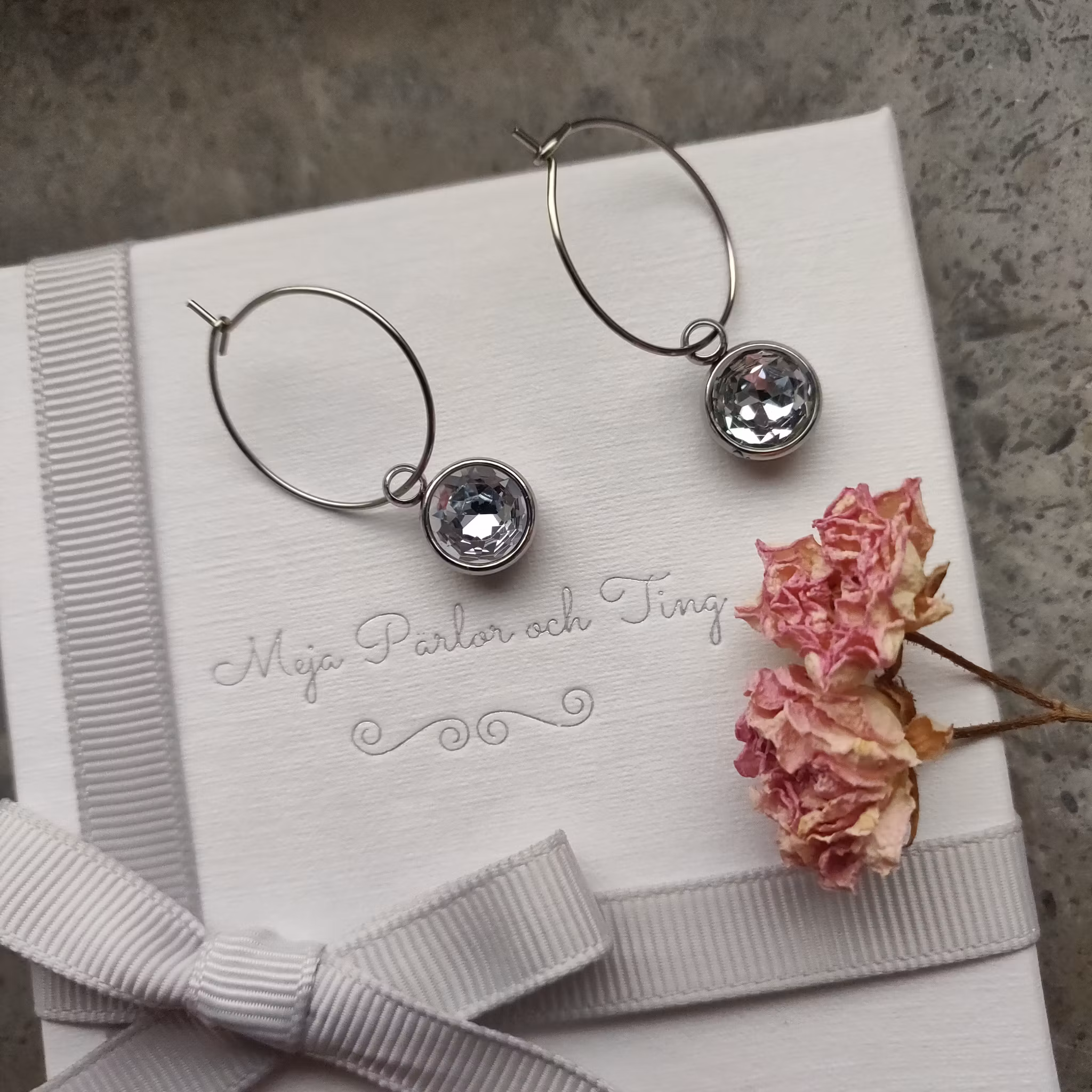Creoler och ljusblå hängen i rostfritt stål. Nickelsäkert.