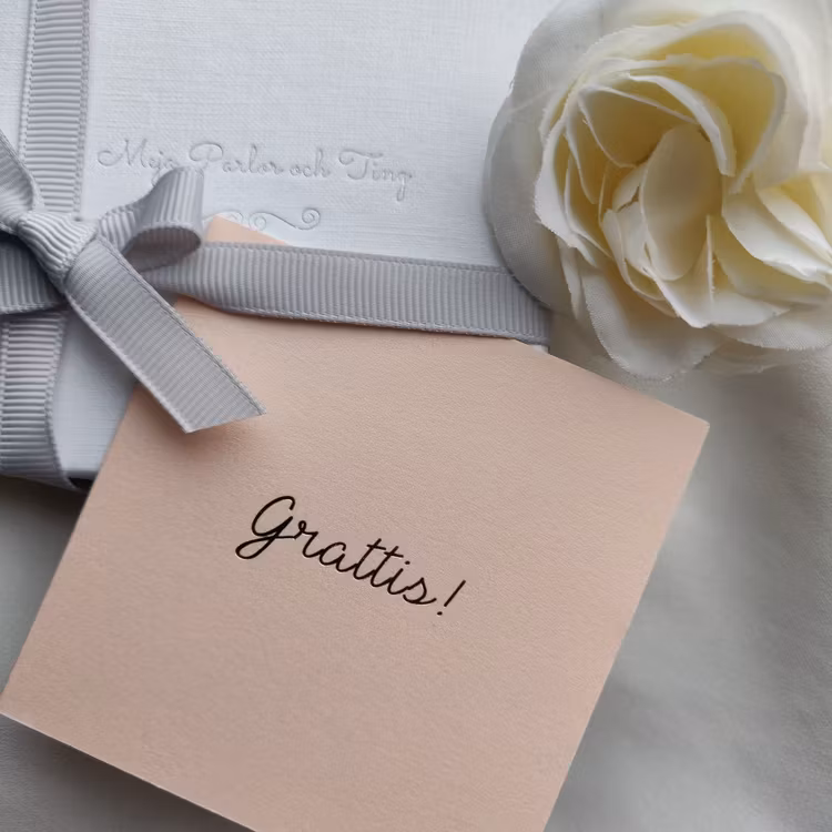 Dubbelvikt textkort med guldfolierad text från Cards By Jojo.