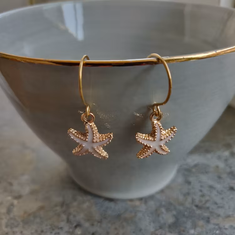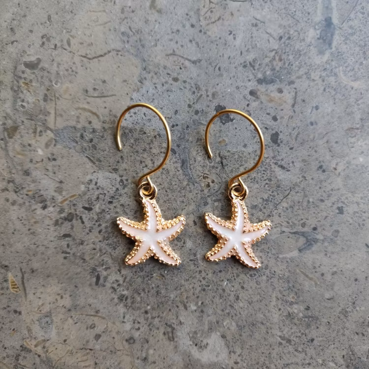 Örkrokar i guldfärgat rostfritt stål som är ca. 18.5x14 mm med sjöstjärnor i nickelsäker metall