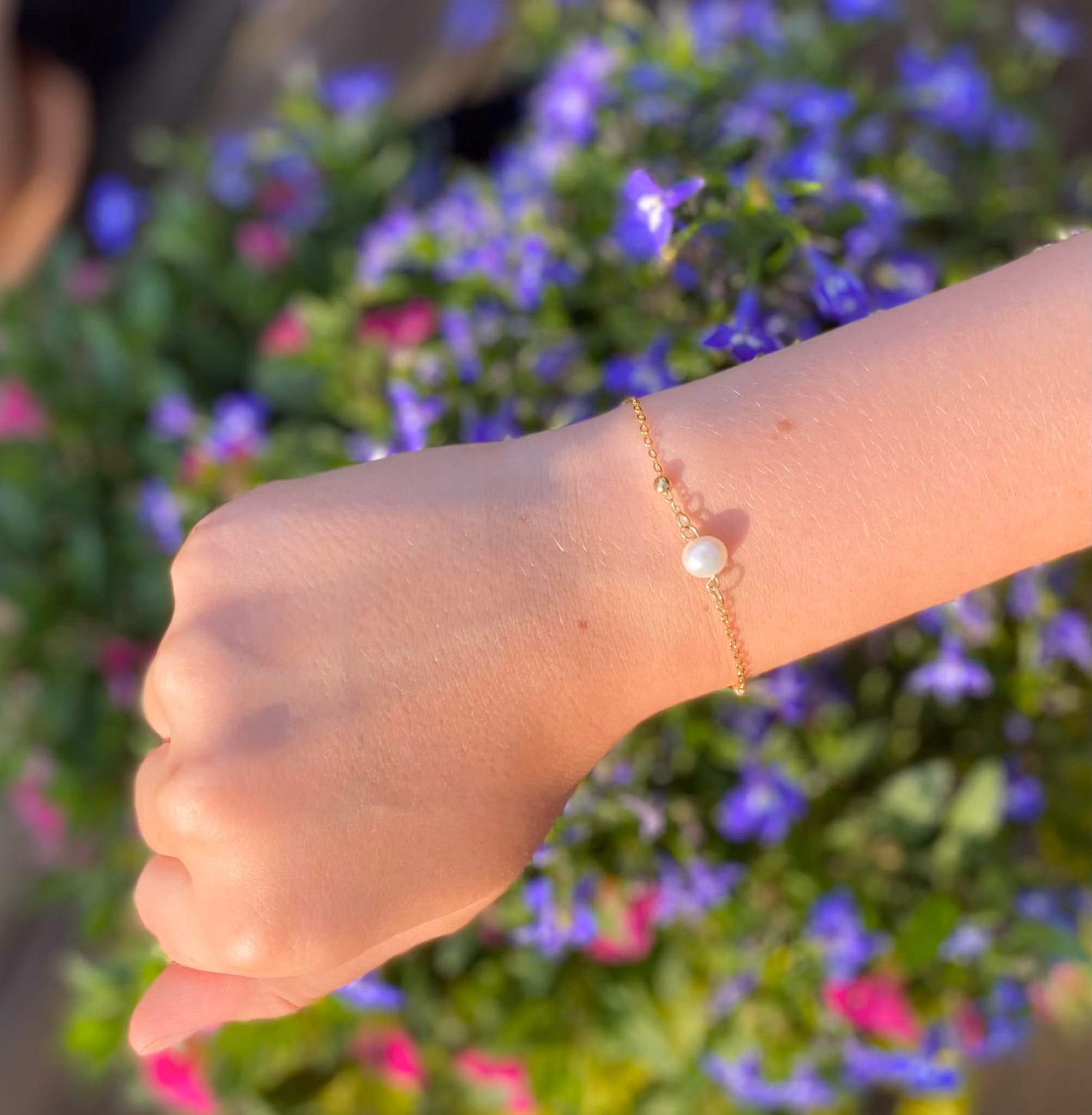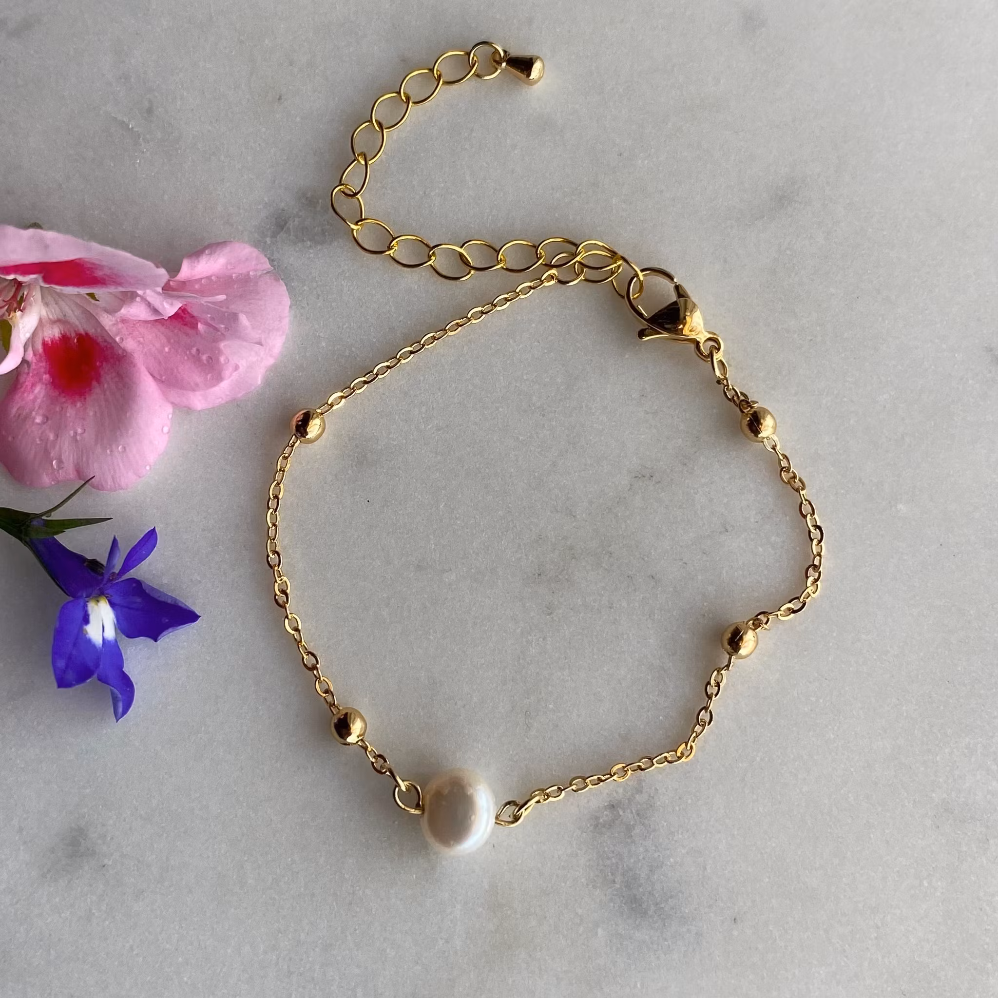 Armband i rostfritt stål med oregelbunden sötvattenspärla.